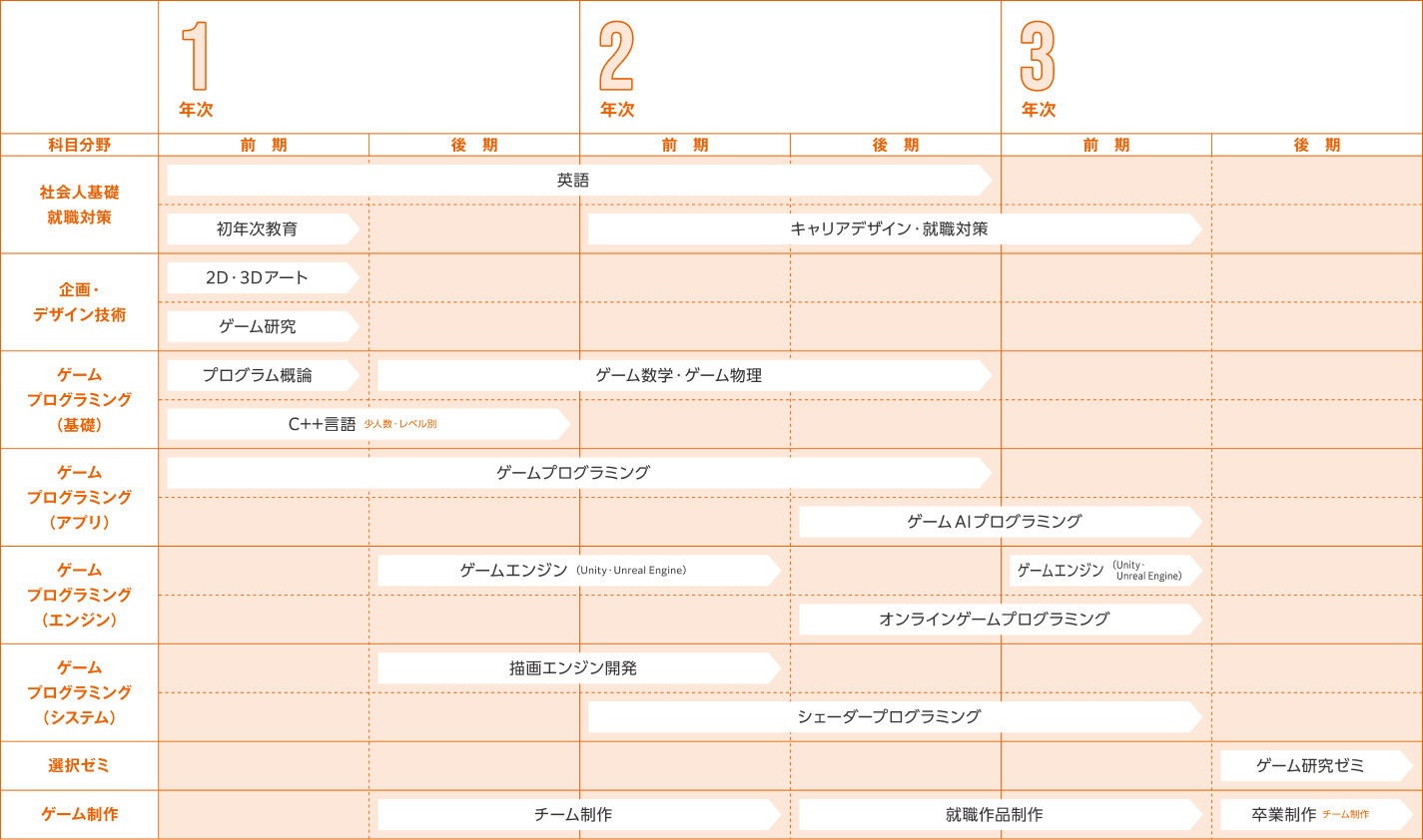 例:ゲームプログラム開発コース(3年制)