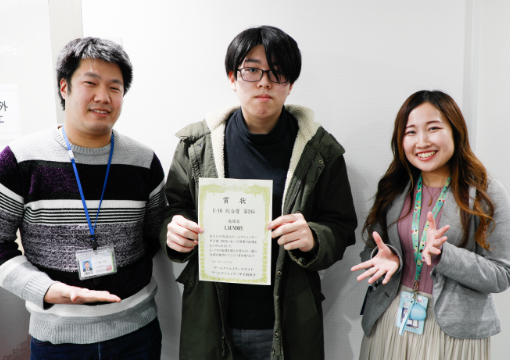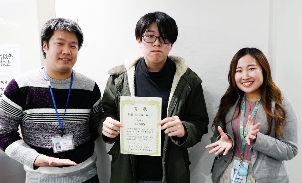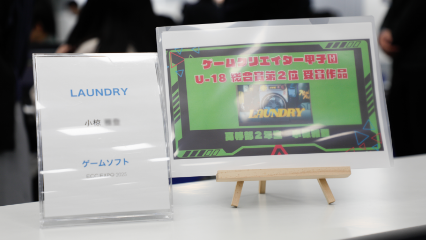 ゲームやIT、Webと、新しいアイデアや技術が詰まった作品を展示し、未来のクリエイターたちが、熱いプレゼンを繰り広げました。そんな中、専門学生に交じって小椋くんの「LAUNDRY」が堂々の出品!さらには、見事《奨励賞》を獲得しました!