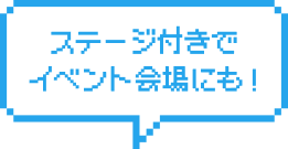 最大76名が寛げる広々ラウンジに、給湯器や自動販売機を完備。ランチスペースとして利用できるほか、ステージやスクリーンも用意されているので、イベント会場としても活用できます。