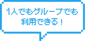 9人掛けの大きなテーブル1つと4人掛けのテーブルが5つ、1人で作業できるカウンター席が4席用意されています。1人でもグループでも、状況に合わせて自由に利用できます。