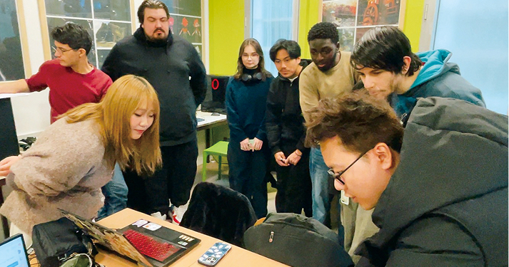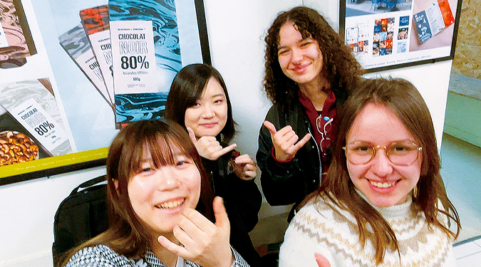 制作ではフランスの学生たちと混合チームを組み、「フランス・ベルギー文化」をテーマに短編CGアニメーションづくり。言葉や使用ソフトの違いを乗り越えながら進む共同制作では、CGスキルだけでなく、異文化コミュニケーション力も大きく成長!制作物プレゼンの後には交流パーティーでお互いの健闘を称え合い、国境を越えた友情が芽生えました。