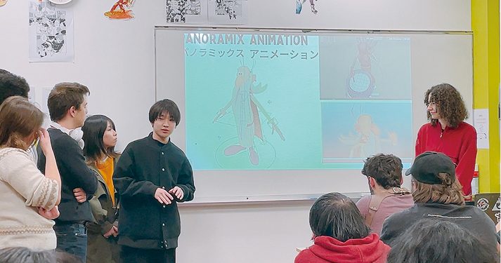 制作ではフランスの学生たちと混合チームを組み、「フランス・ベルギー文化」をテーマに短編CGアニメーションづくり。言葉や使用ソフトの違いを乗り越えながら進む共同制作では、CGスキルだけでなく、異文化コミュニケーション力も大きく成長!制作物プレゼンの後には交流パーティーでお互いの健闘を称え合い、国境を越えた友情が芽生えました。