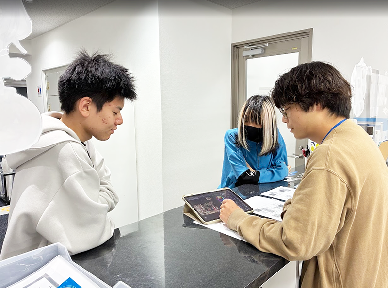 自主制作で行き詰まったりしたときにも、先生に質問に来てもOKなんです!
