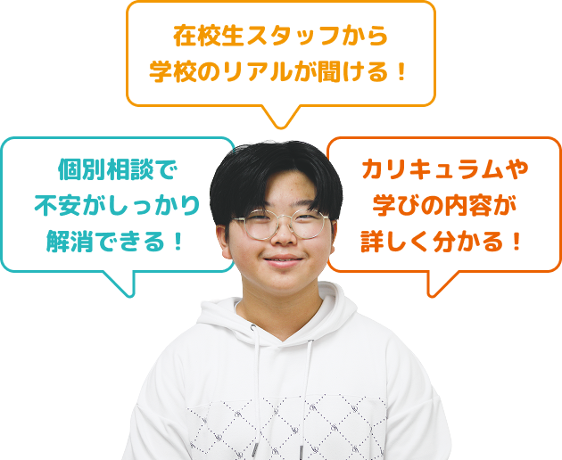 もっと深く体験したい方におすすめのステップアップイベントです。通常の見学会よりも内容がレベルアップし、実際の授業に近い体験ができます。「もっとやってみたい」「本格的に学べるか試したい」という方にぴったり。1回目からの参加も可能ですが、学校見学会を経験した後に参加すると理解がより深まります。進路を具体的に考えたい方におすすめです。
