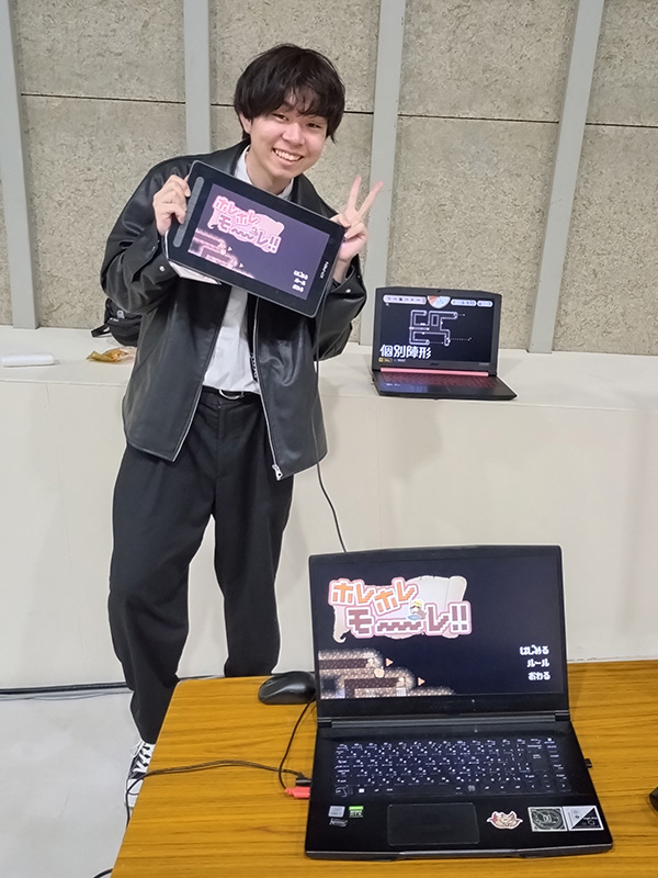 三澤さんは、つい先日卒業したばかり。「ホレホレモ~~~レ‼」は卒業制作でしたが、Steamで公開するかも? とのことで期待しています。4月からゲーム企業で働くことになりますが、がんばってください。