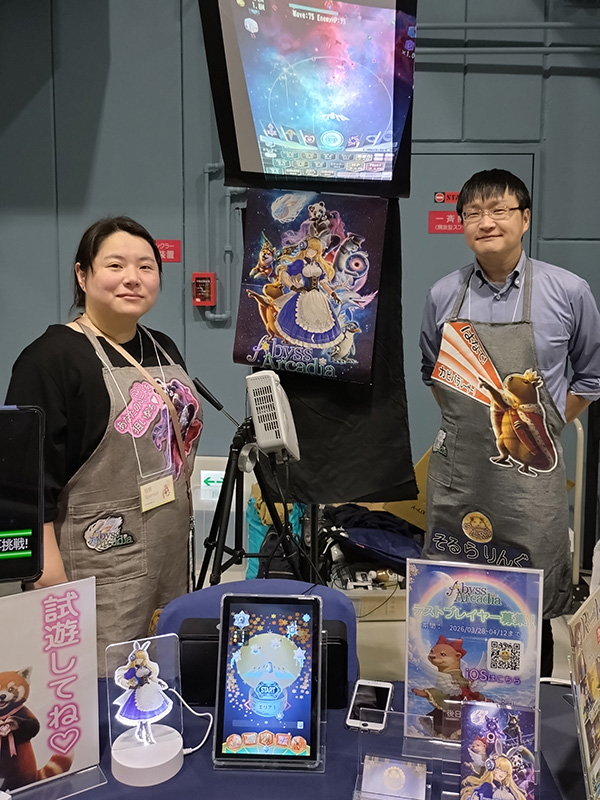 だいぶ前の卒業生となる重里さんは、開発中の「AbyssArcadia」を展示。シューティングのような見た目のタワーディフェンスで、かなり複雑なシステムなのですが、AIを駆使して形にしたそうです。休日や余暇でゲームを作れる、すごい時代になりました。