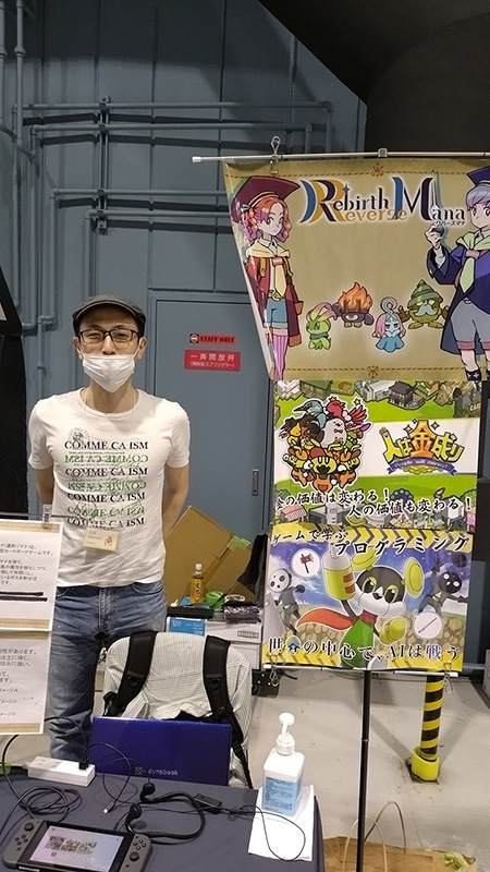 なんと、企画専攻の杉田先生もブースを構えていました。「Nullが参照されました」は、メカクレ男子と対話するアドベンチャーゲーム。デモ版が展示に間に合って良かったですが、完成はいつになるのでしょうか。学生の皆さんで急かしてください(笑)