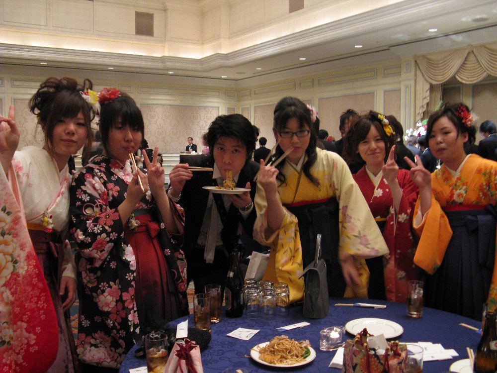 卒業式の後の「卒業パーティー」では、学生会(イベントクラブ)が中心となり、「お楽しみ抽選会」が行われ、携帯ゲーム機やハードディスクなどの高額賞品から、青汁やウコンのドリンク、芸能人のサイン色紙までいろいろな賞品が