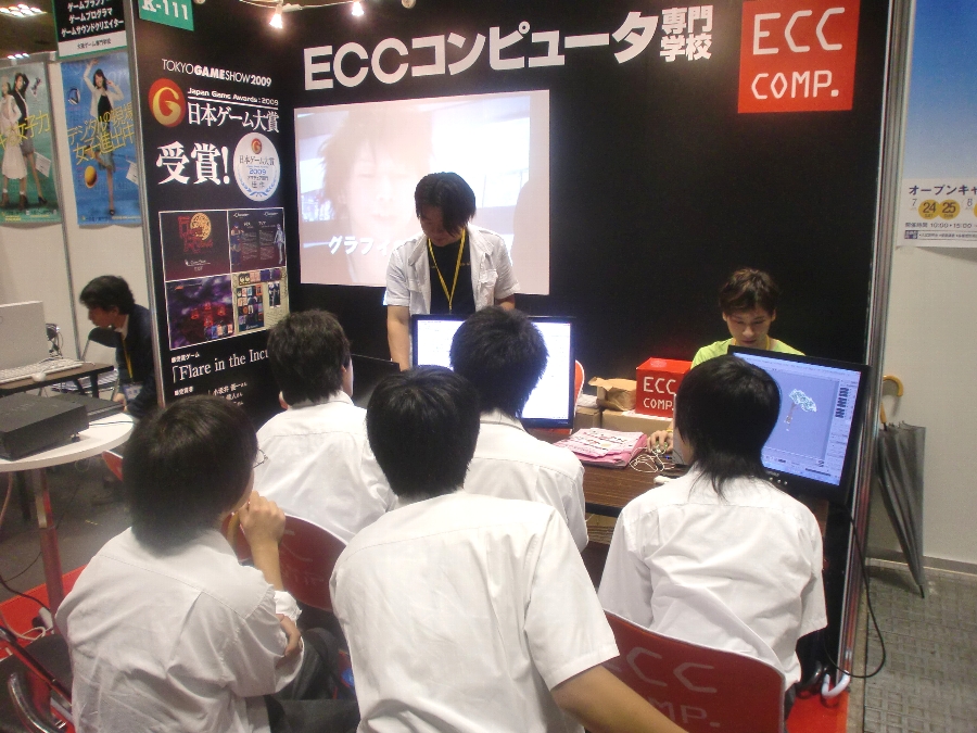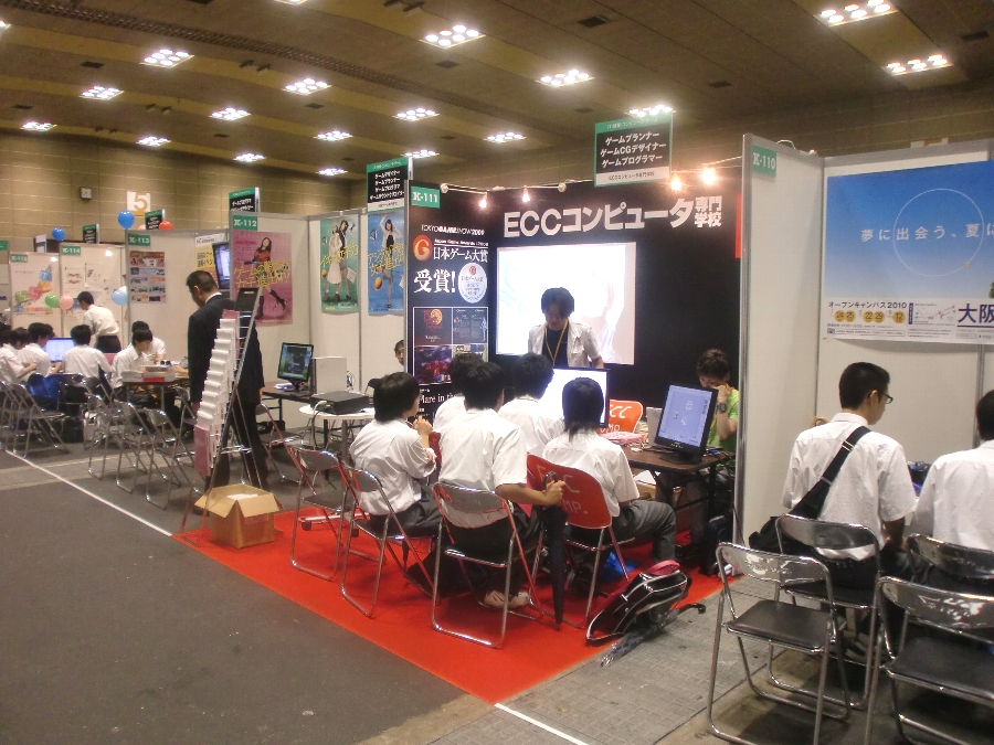 我々ECCコンピュータ専門学校もゲームやCG・映像分野でブース出展していたため、一日で100人を超える高校生の方とお話しすることができました!