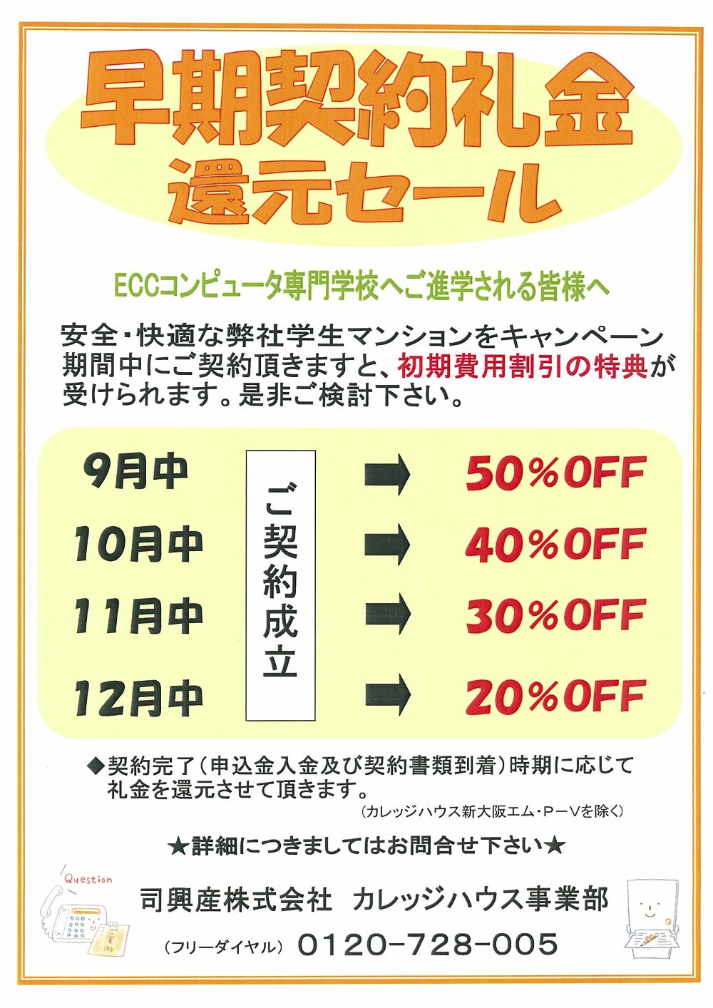 ・早期契約礼金還元セール 実施中! (早いがお得!)