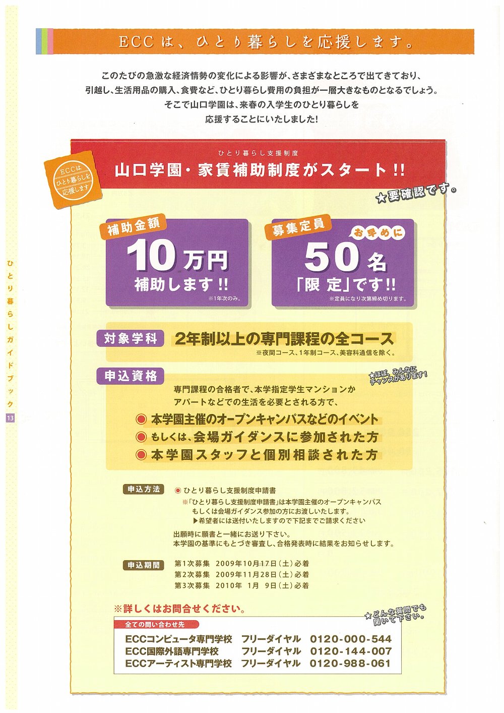 ・山口学園・家賃補助制度 実施中! (オープンキャンパスにGO!)