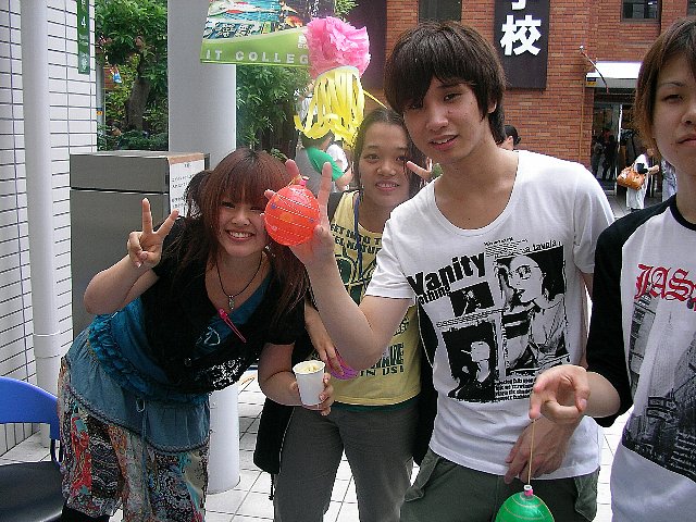 7月7日(月)の当日は、コンピュータ専門学校では学生会(学生イベント委員会)が中心となり、お昼休みに芝生広場でフライドポテト・ミルクせんべい・ヨーヨーつり大会・早食い競争などが行われました。フライドポテトは約300人分を用意。姉妹校の2校の学生も集まり、夕方には完売となりました。姉妹校では「かき氷」や「アイスクリーム」を販売しました。縁日の売上はすべて「地球救済キャンペーン」に寄付されました。