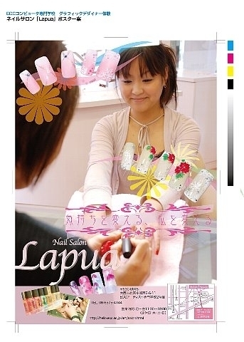 そしてメインイベントの共同作品制作へ。当日のお題は、姉妹校のアーティスト専門学校内にあるネイルサロンのプロデュース。Web・映像・グラフィックデザインの3分野に分かれて、「どういったものを作るか?」という企画から始まり、モデルさんを起用しての本格的な写真・映像撮影も体験。はじめは「どんな風にとったらいいの?」と戸惑っている人もいましたが、慣れてくると「こんなポーズお願いします。」と積極的に撮影を楽しんでいました。それぞれが撮影した画像をもとに、皆さんクリエイターと一緒に素敵な作品を作りあげました。最後に当日作った作品を、講師がスクリーンで発表して各分野の表現の違いを楽しんでいただきました。