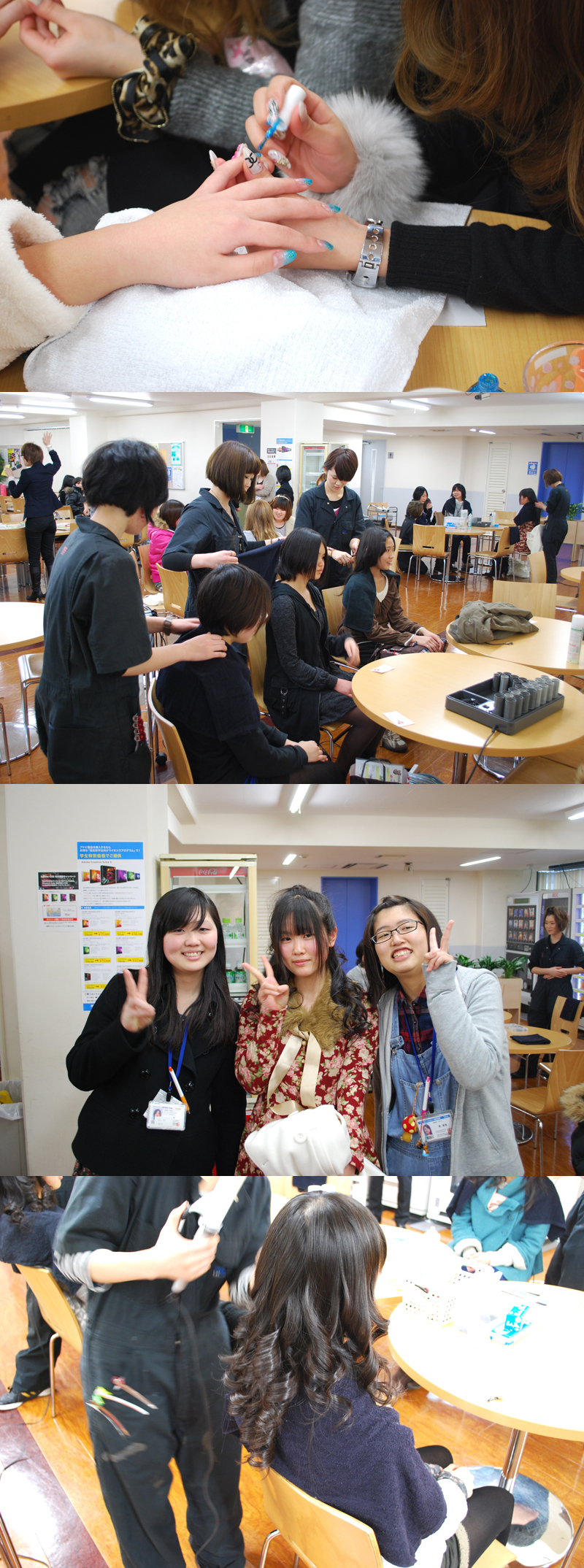 今日はECCコンピュータ専門学校に在籍している女子学生にもたくさんサポートしてもらいました!!姉妹校のECCアーティスト専門学校の学生さんにもご協力頂いて“女子磨き”も実施!ネイル!ヘアメイク!メイク!が無料でしてもらえるレッスンも行いました!