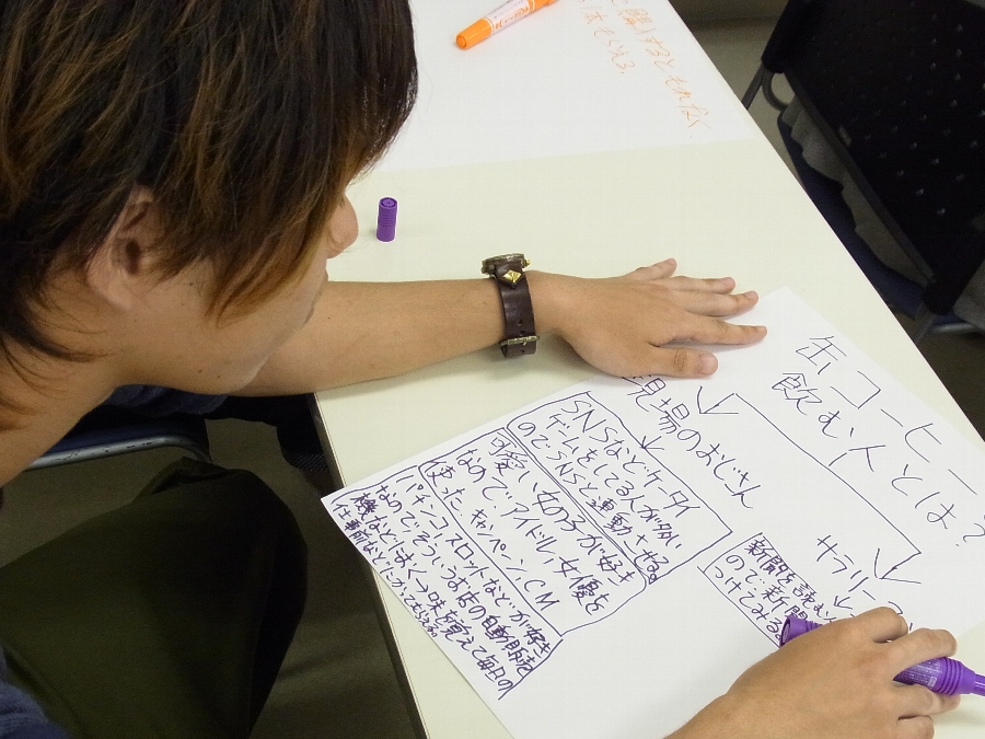 ざっくりまとめますと、サラリーマンが飲みたくなるような缶コーヒーのコミュニケーションデザインを考えて、A3用紙に好きに書いてまとめてください、というもの。