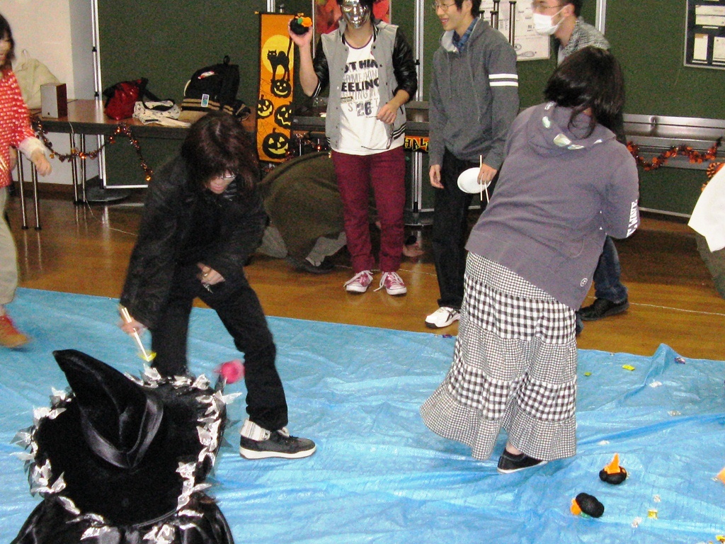 今回はハロウィン。ハロウィンなら「トリック&トリート!」「イタズラかお菓子か!」ということで、今回はお菓子を使ったゲーム大会です。その名も「あめ投げ大会」。