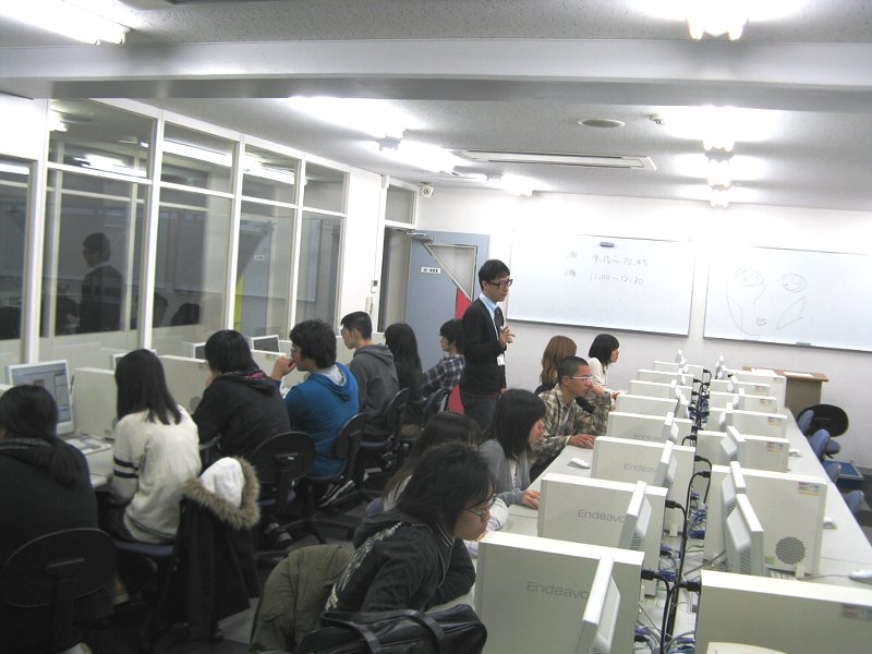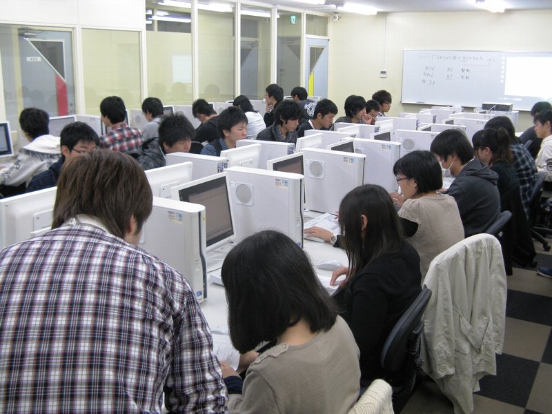 少し基礎学習を行ってから演習問題にチャレンジ!ゲーム系コースのクラスでは先生から「絶対ゲーム業界に就職しよう!それだけのノウハウがこの学校にはある!最大の敵は自分!これからいくつものハードルがあるが、それを一歩一歩クリアしていこう!」と熱いメッセージがありました。グン!と士気が高まった様子でした。