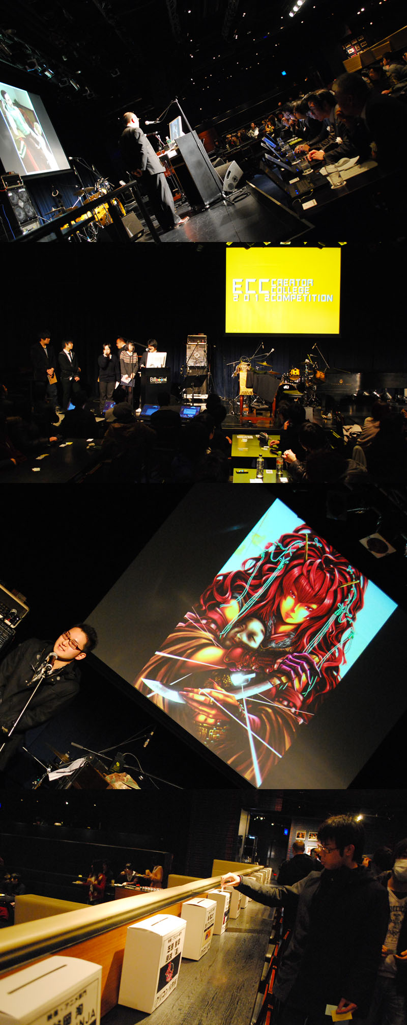 クリエイターカレッジで最大の作品発表会の“クリエイターカレッジコンペティション”が開催されました。開催場所はあのお洒落ライブハウス“ビルボードライブ大阪”!毎年恒例です。 作品発表会を盛り上げる雰囲気としては、照明、音響、座席、サービス、ともに完璧の空間です。