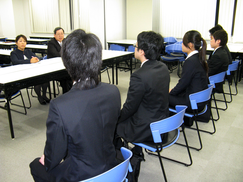 学内企業説明会では業務内容の説明から採用手順まで詳しく説明して頂き、とても明るい社風を感じました。また盲導犬協会にも協力されるなど、社会貢献にも積極的に参加されている企業でした。説明会のあと、企業様のご厚意により、「集団模擬面接」も実施して頂き、ECC学生達に就職活動における具体的なアドバイスも頂戴しました。