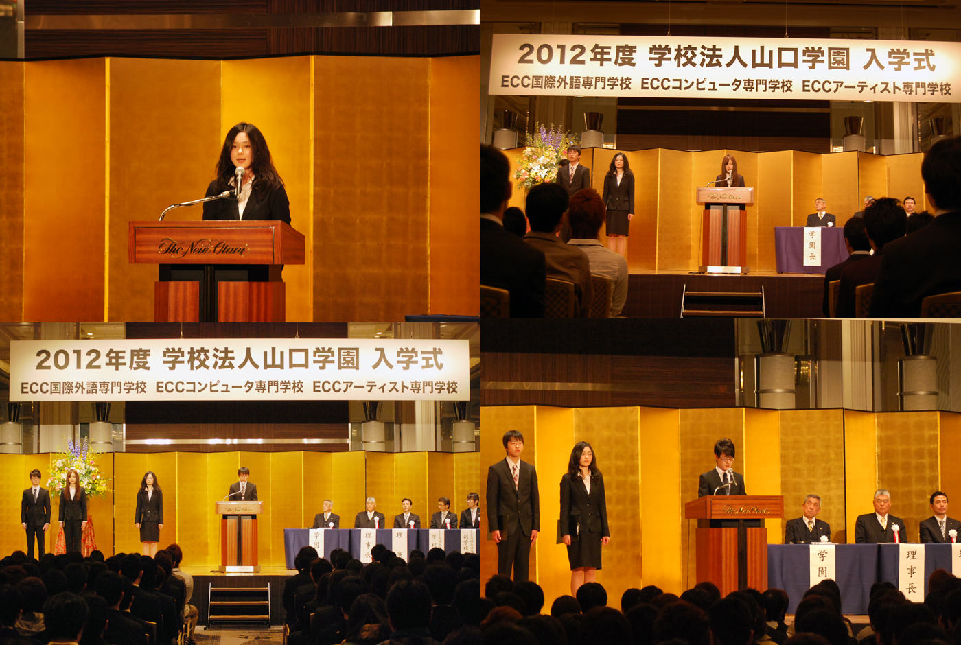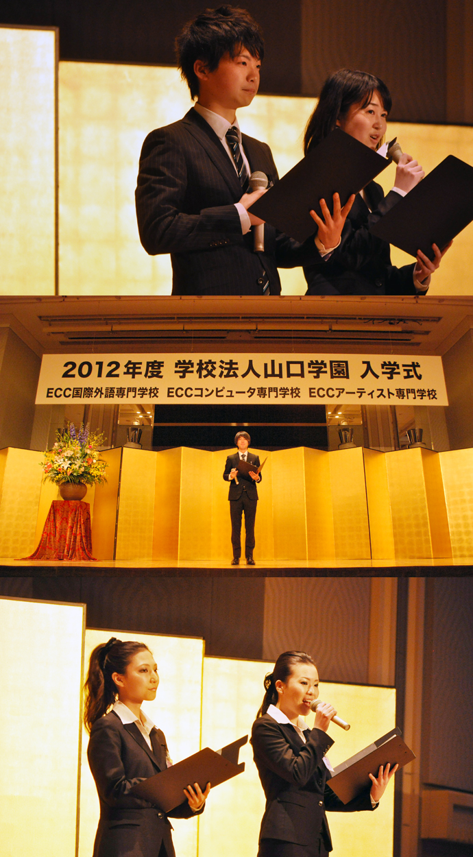 4月3日(火曜日)春の嵐にも負けず、ECCコンピュータ専門学校、ECC国際外語専門学校、ECCアーティスト専門学校の3校合同入学式がホテルニューオータニ大阪で行われました。
