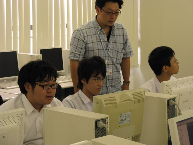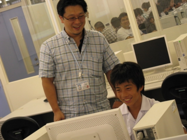 2008.09.18 【体験学習】吹田市立千里丘中学校の生徒さんが来られました。 総合学習の一環で、吹田市立千里丘中学校の生徒さん5人が、ECCコンピュータ専門学校に来られました。当日は、ゲームプログラムの授業を受けて、とても楽しんでいました。「若い子は飲み込みが早いわー」と、年齢が倍以上違うおじさん(筆者)は思いました。。。ECCコンピュータ専門学校では、地元中学生や一般の方を対象とした、地域貢献事業も行っています。お気軽にご相談ください。 Prev Next