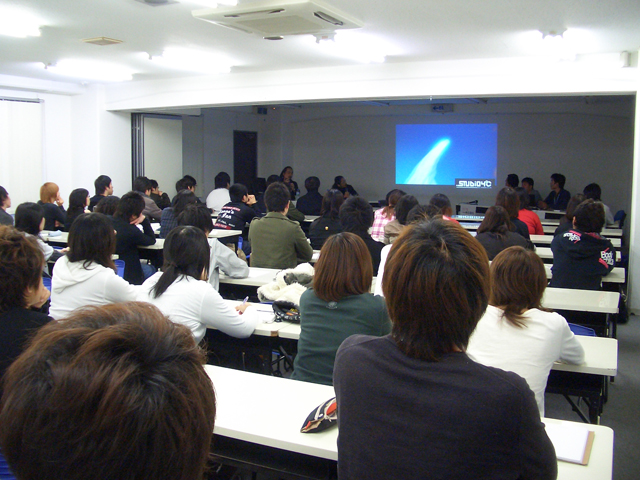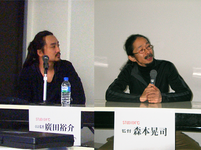 『鉄コン筋クリート』『マインド・ゲーム』『THE ANIMATRIX』など、斬新な話題作を次々と放ってきたビジュアルクリエイティヴ集団・STUDIO4℃の創設メンバーであり、今回「次元爆弾」の監督を務められた森本晃司監督と、“Genius Party Beyond”の「MOONDRIVE」でCGI監督を務められ、森本監督の「次元爆弾」のCG制作スタッフとしてもご活躍された廣田裕介氏をお招きし、在校生向けに講演会を行っていただきました。