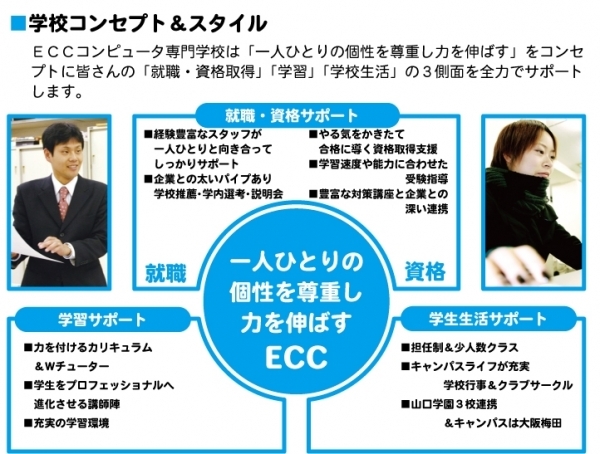 2008.12.17 【ECCコンピュータ】学校の特長についてのページを追加しました。 「ECCコンピュータ専門学校って、どんな学校?」がわかるページです。ゲーム・IT・クリエイターの各カレッジの特色はもちろん、ECCコンピュータ専門学校共通の特色である、実習中心カリキュラム・Wチューター・少人数クラス制についても、気になる施設・設備についても紹介しています。●学校の特長についてはこちら。http://hello.ecc.ac.jp/comp/merit/ Prev Next
