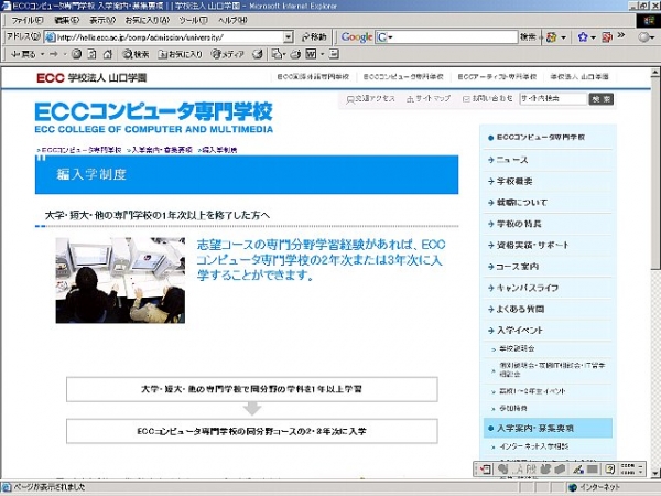 http://hello.ecc.ac.jp/comp/admission/university/