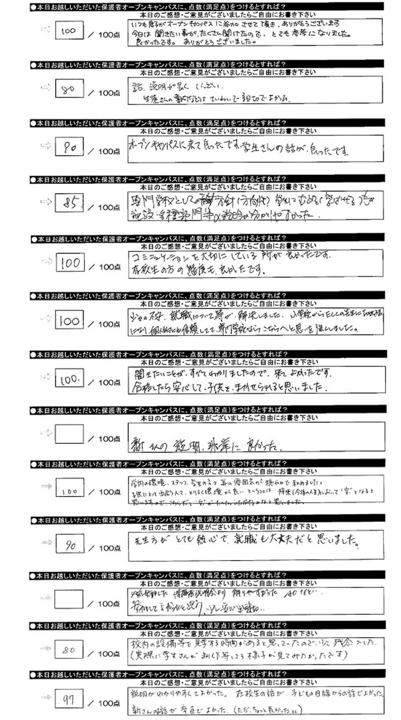 ★「保護者オープンキャンパス」保護者様からの感想(アンケート)はコチラ
