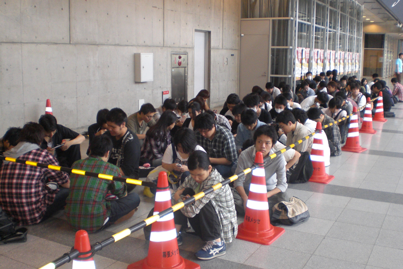 そこでしかもらえないレアグッズのために長蛇の列を作り、