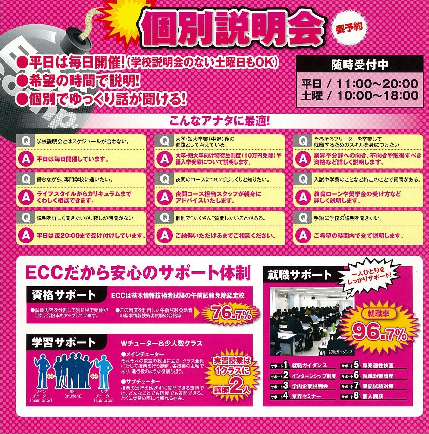 ECCコンピュータ専門学校では基本的に土曜日に『学校説明会』を