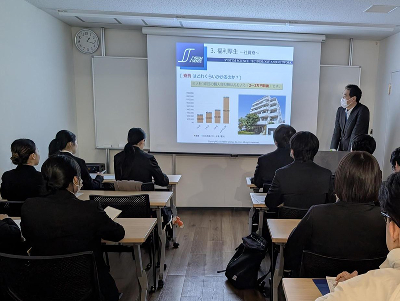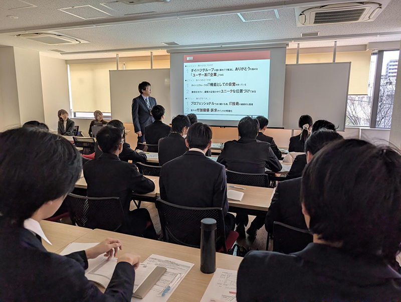 各企業様からは、事業内容や働き方、研修制度などについてご説明いただき、学生たちはメモを取りながら真剣な表情で耳を傾けていました。